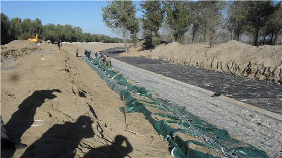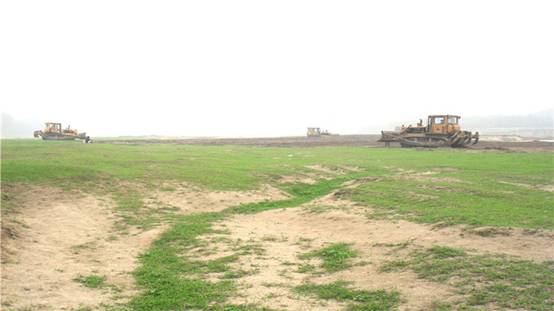 左堤加高:樁號ZD6+918~ZD9+235,填筑質(zhì)量標(biāo)準(zhǔn):粘性土壓實度≥92%,無粘性土相對密度≥0.65。填筑完成后進行麻網(wǎng)椰纖植生毯鋪設(shè)。