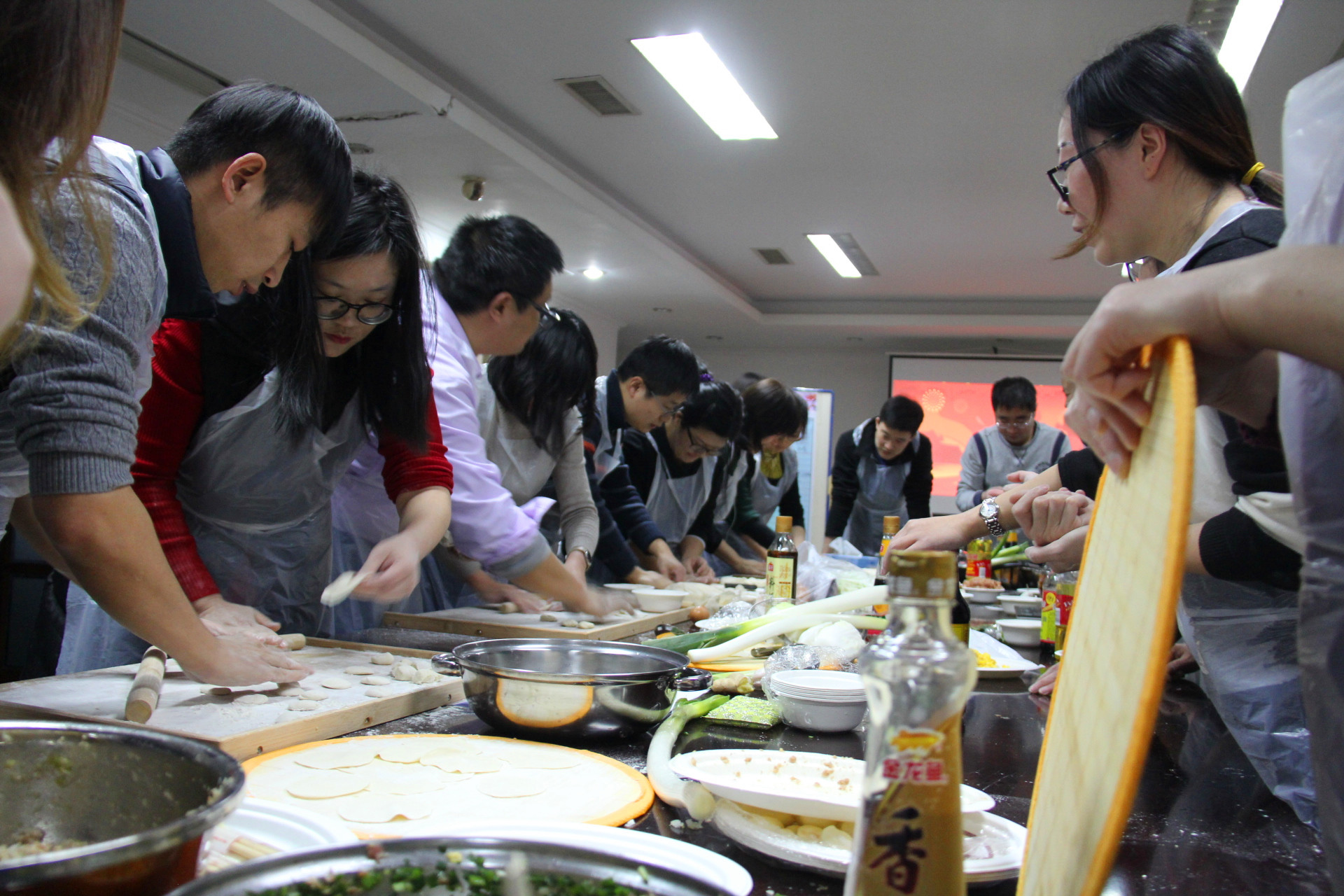 設(shè)計所工會在2月9日一早就為大家準(zhǔn)備好了包餃子的材料和用具。9點(diǎn)整,活動正式開始。比賽隨機(jī)抽簽分為四隊(duì),大家各自分工,洗菜、拌餡,一起動手,一邊包餃子一邊交流著不同地方的新年習(xí)俗。