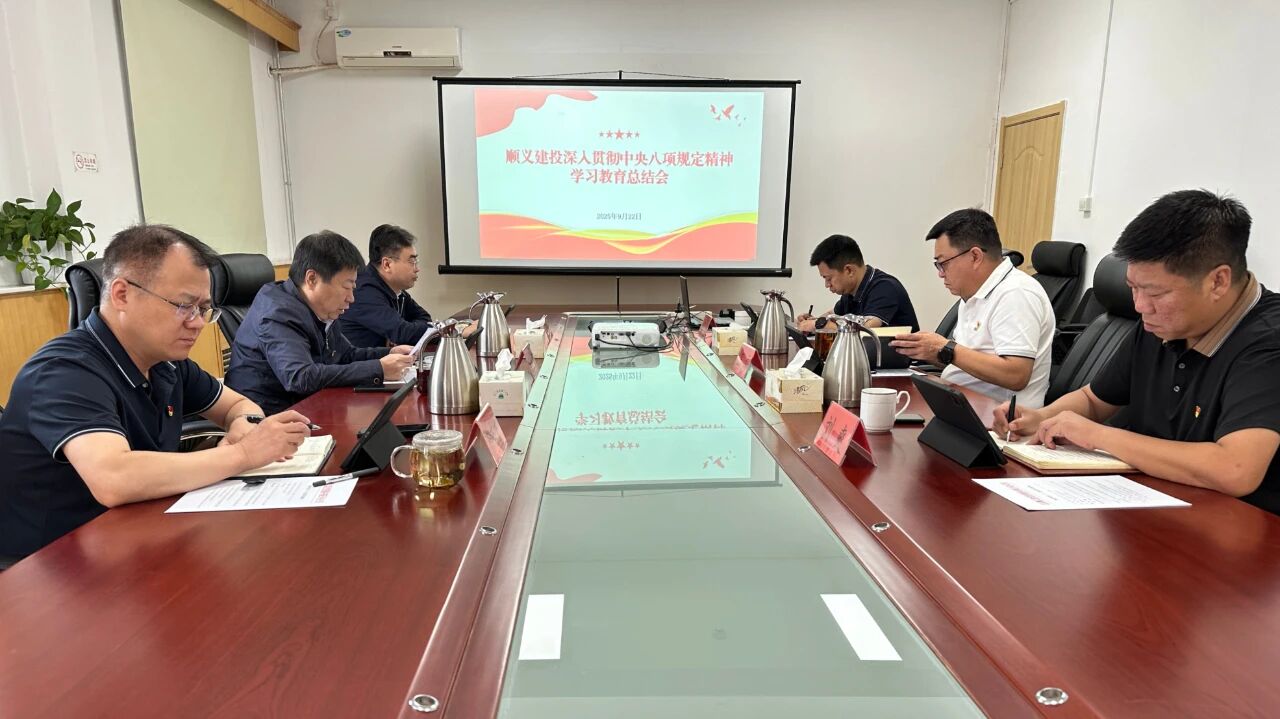 2025年9月22日,順義建投召開黨委會議,集中學習習近平總書記重要指示、中央以及市區(qū)層面學習教育總結(jié)會議精神,全面總結(jié)全公司深入貫徹中央八項規(guī)定精神學習教育開展情況,研究部署鞏固拓展學習教育成果,鍥而不舍落實中央八項規(guī)定精神,推進作風建設(shè)常態(tài)化長效化工作。公司黨委書記、董事長宋學農(nóng)同志主持會議并作總結(jié)講話。