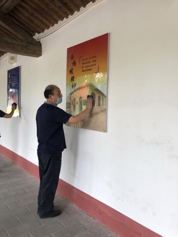 活動中,黨員干部重點擦拭了黨史宣傳板、誓詞臺、路燈桿,清掃了湖邊棧道,撿拾了湖邊白色垃圾。在清掃過程中,同志們精神抖擻,不怕臟不拍累干得熱火朝天。經(jīng)過清掃的基地煥然一新,環(huán)境明顯改善。