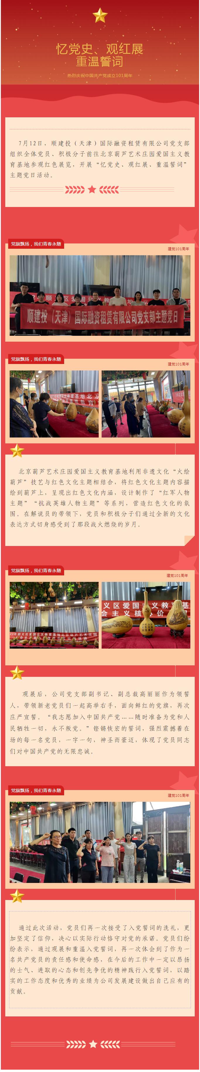 慶祝建黨101周年系列報(bào)道|順建投(天津)國(guó)際融資租賃有限公司黨支部組織開(kāi)展“憶黨史、觀紅展、重溫誓詞”主題黨日活動(dòng)