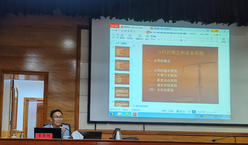 本次培訓(xùn)邀請公司法律顧問李景順律師主講。李律師從“合同基本知識”、“合同常見的法律風(fēng)險”、“合同風(fēng)險防范要點”等方面進行講解,并列舉相關(guān)案例進行解讀,培訓(xùn)內(nèi)容全面實用,通俗易懂。培訓(xùn)過程中,參訓(xùn)人員認真聽、用心記,不時與老師交流互動,探討工作中遇到的合同管理問題。