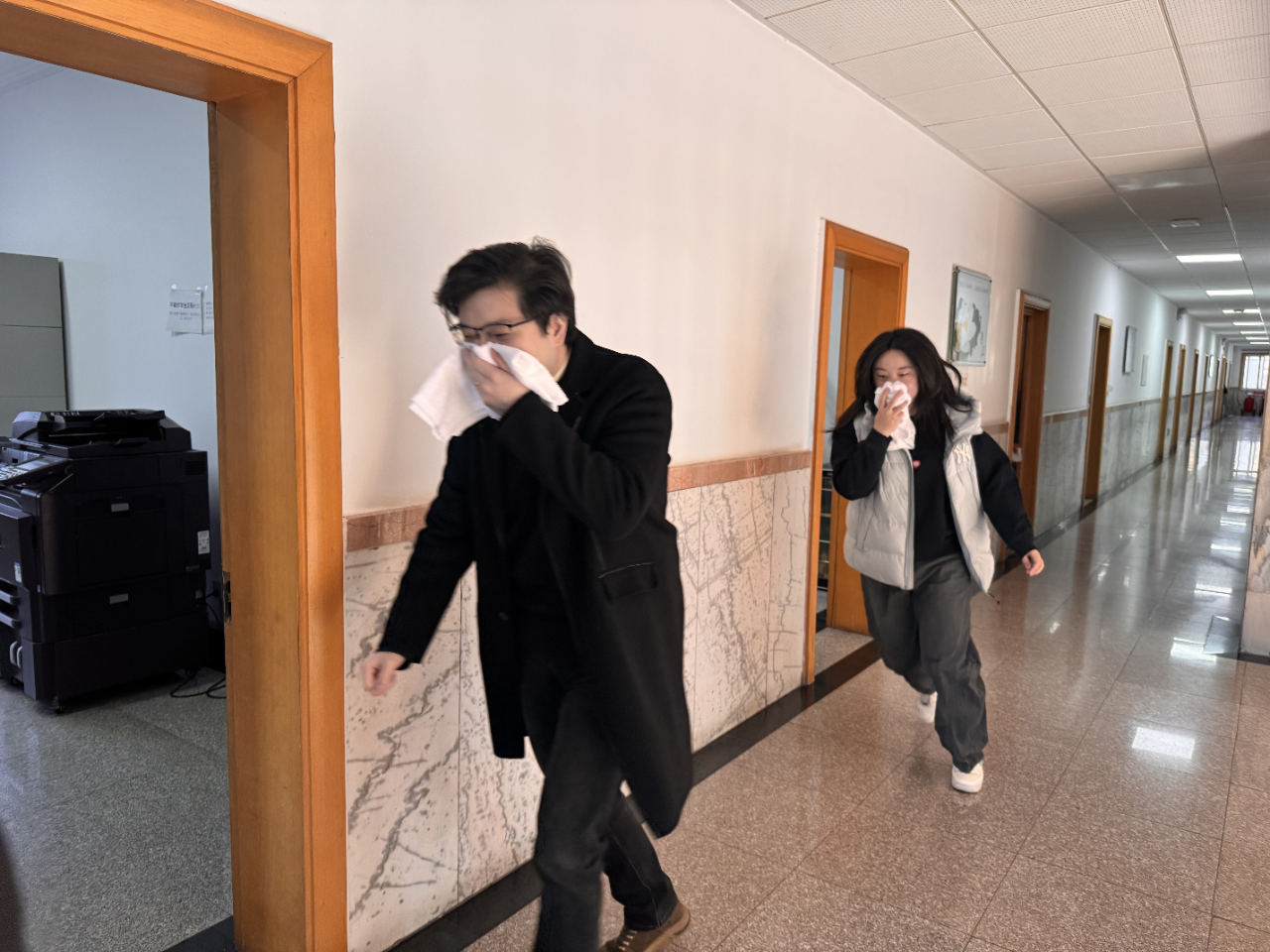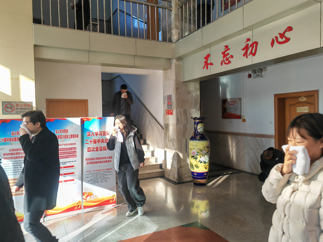 應(yīng)急疏散在辦公場(chǎng)所消防應(yīng)急疏散演練環(huán)節(jié),隨著刺耳的火警鈴聲響起,各部門(mén)、各小組按照《應(yīng)急逃生預(yù)案》,用濕毛巾捂住口鼻,聽(tīng)從指揮、從各樓層辦公場(chǎng)所迅速有序疏散到廣場(chǎng)開(kāi)闊地帶。