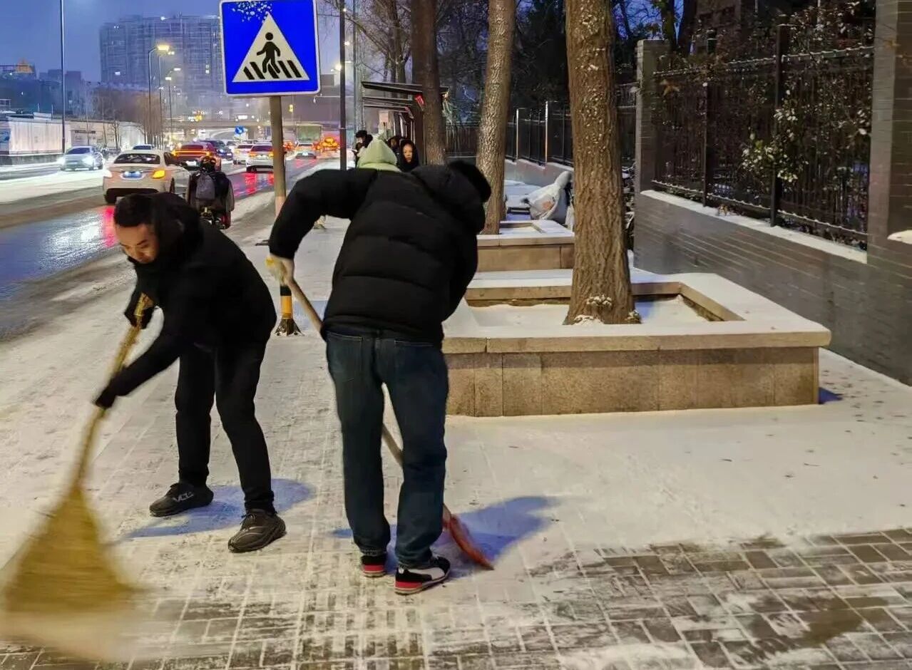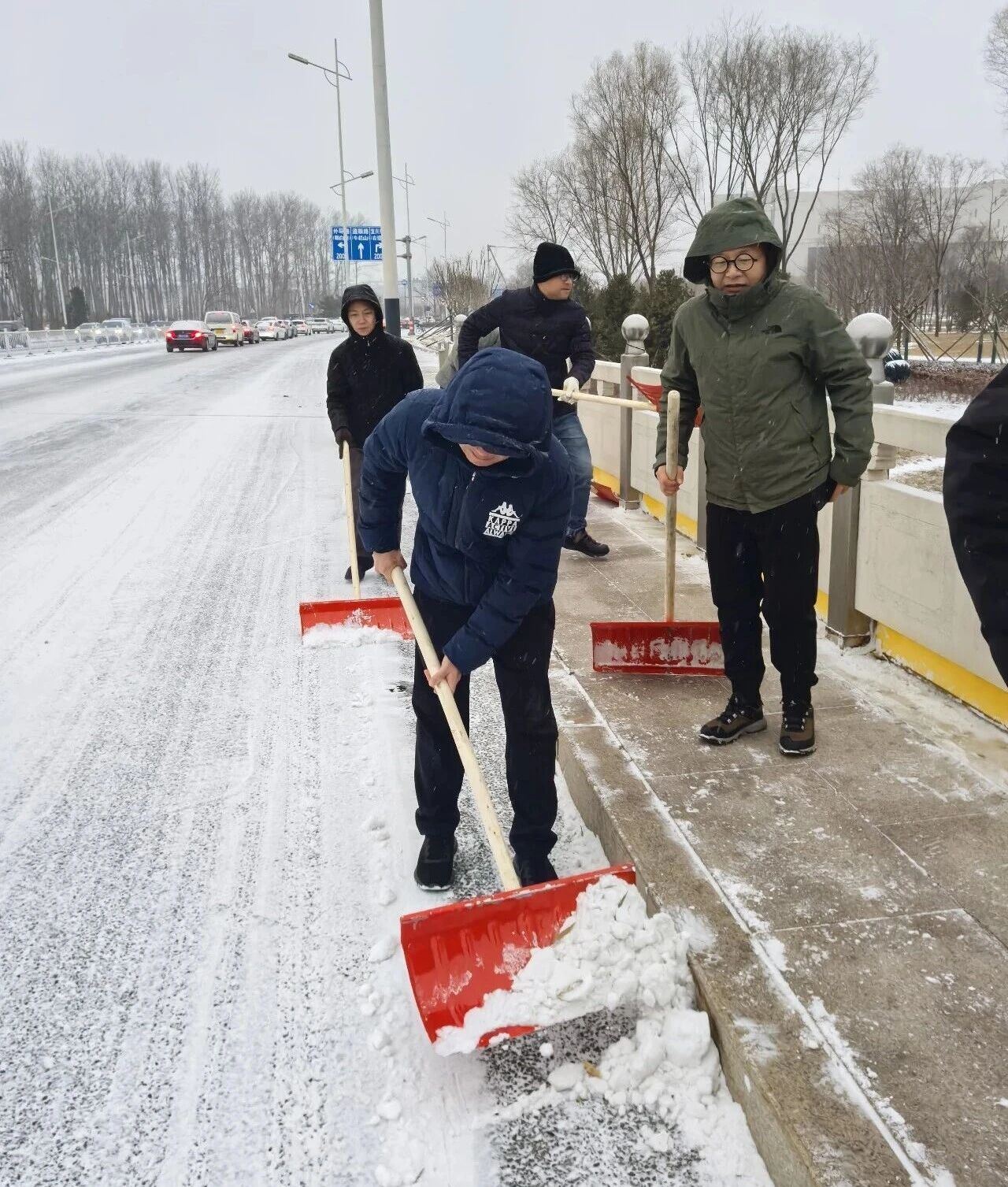 公司提前對各類應(yīng)急物資進行清點與補充,備齊除雪鏟、鐵鍬、掃帚等工具,確?!袄贸觥⒂玫蒙稀?。公司掃雪小組奔赴通順路(復(fù)興東街—濱河北路)責任路段,將掃雪范圍向公共區(qū)域延伸,實行“隨下隨掃”,在降雪期間確保一條寬度不少于1米的行人通道,完成責任道路清掃后,掃雪小組繼續(xù)清掃自身區(qū)域和門前三包區(qū)域。經(jīng)過數(shù)小時的"浴'雪'奮戰(zhàn)",積雪清理完畢,實現(xiàn)了“雪停路凈”的目標,以實際行動踐行國企擔當。