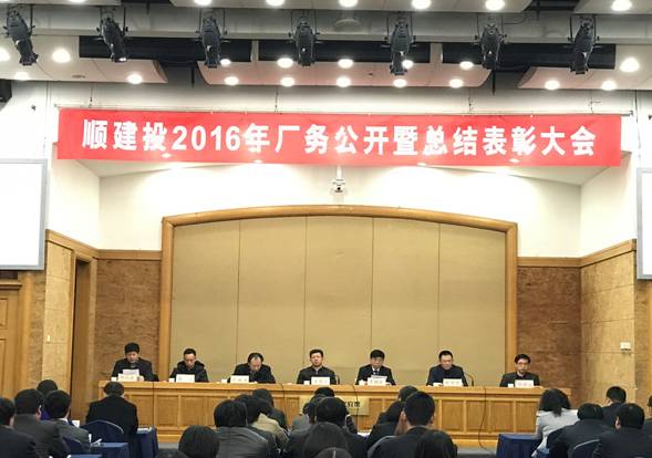 2017年1月18日,北京順義建設(shè)投資服務(wù)有限公司召開2016年廠務(wù)公開暨總結(jié)表彰大會,區(qū)委副書記、區(qū)委黨校校長于慶豐、區(qū)總工會主席李國新、區(qū)國資委副書記張暉出席,公司領(lǐng)導(dǎo)班子成員、科級領(lǐng)導(dǎo)干部、職工代表、獲得先進(jìn)稱號的集體代表和個人參加。