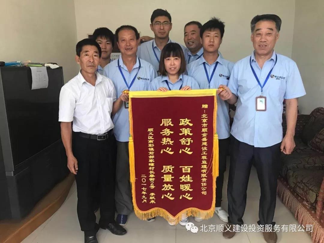 順義區(qū)2017年農(nóng)村地區(qū)“煤改電”工程實施以來,北京市順金盛建設工程監(jiān)理有限責任公司已收到3面錦旗,分別來自順義區(qū)牛欄山鎮(zhèn)政府、佛山歐思丹熱能科技有限公司和南彩鎮(zhèn)前郝家疃村村民李躍來。
