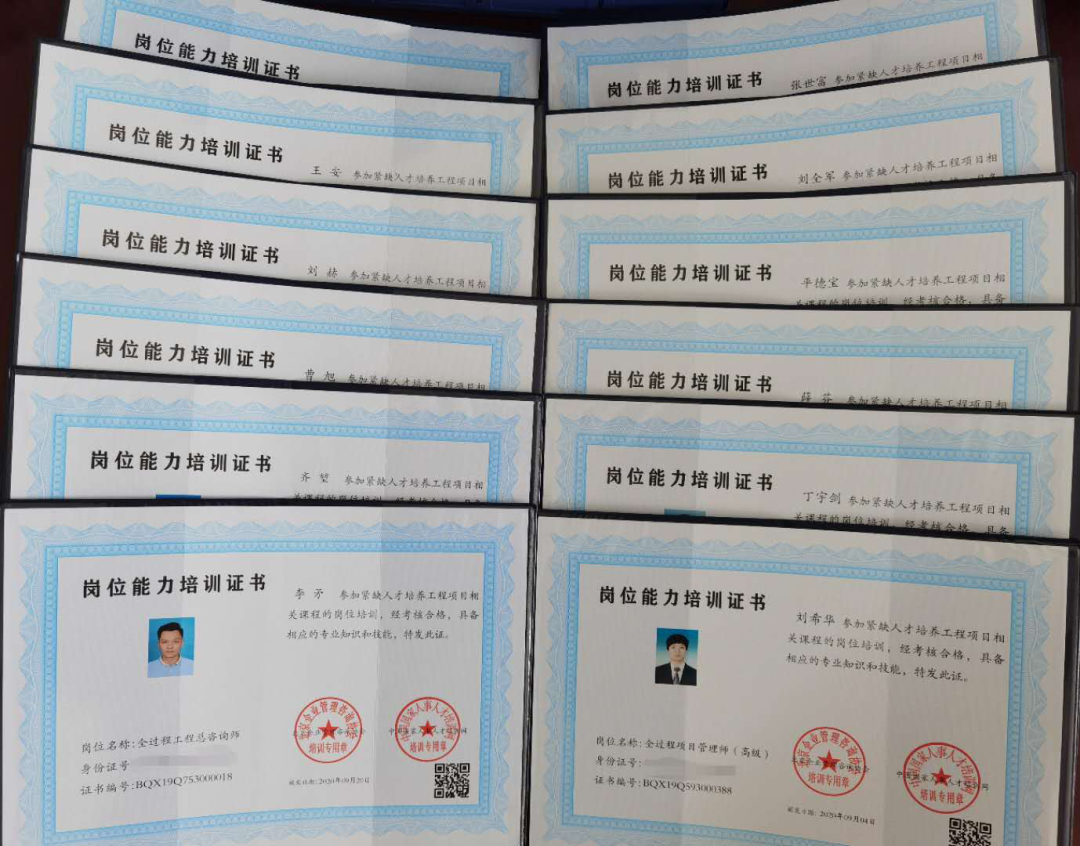 為適應(yīng)工程咨詢服務(wù)行業(yè)的發(fā)展變革,同時進(jìn)一步促進(jìn)公司提升發(fā)展,鑫科公司著力推進(jìn)職工崗位技能培訓(xùn)。2020年7月公司動員并組織廣大干部職工參加全過程工程咨詢的專業(yè)學(xué)習(xí),共計14名干部職工參與了培訓(xùn),培訓(xùn)內(nèi)容涉及建設(shè)項目全過程工程咨詢及操作、建設(shè)項目全過程工程咨詢操作實務(wù)、全過程咨詢項目團隊組建以及全過程工程咨詢招投標(biāo)法律風(fēng)險防范等。參訓(xùn)全體人員于7月31日參加并通過了相關(guān)資格考試,9月取得了中國國際工程咨詢協(xié)會頒發(fā)的崗位能力資格證書。其中4人取得全過程工程總咨詢師證書,7人取得全過程工程項目管理師證書,3人取得全過程專業(yè)咨詢工程師證書。公司領(lǐng)導(dǎo)班子均取得了相關(guān)證書。9月繼續(xù)參加了中國國家人事人才培訓(xùn)網(wǎng)的崗位能力提升培訓(xùn),并獲得了崗位能力培訓(xùn)證書。