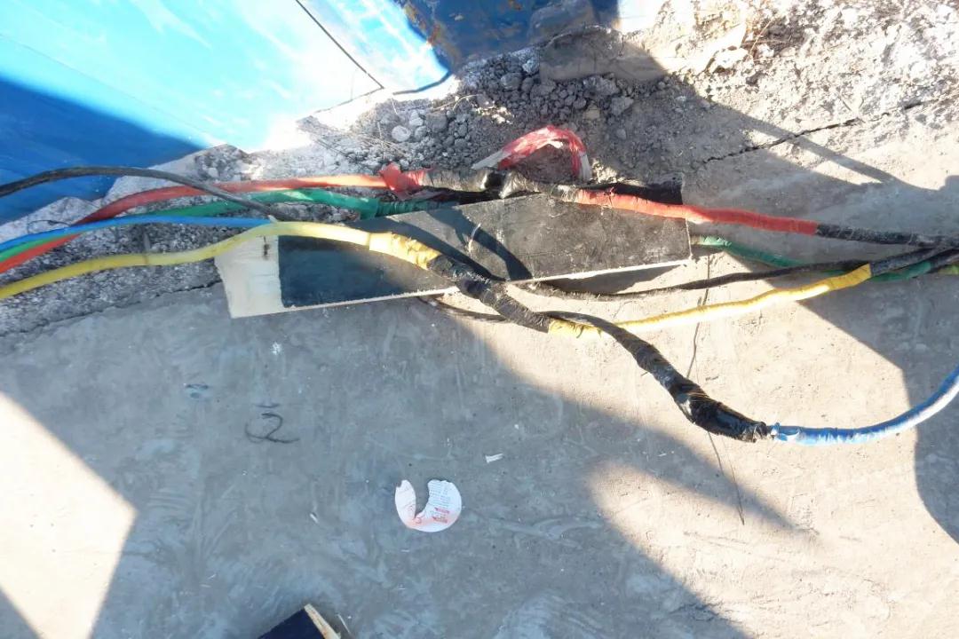打樁機連接電纜鋪設(shè)不規(guī)范---穿越運輸路面且未做鋪設(shè)保護
